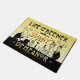 Cet unique, antiquité-regardant la conception est fait pour ressembler à l'art déco 20s de l'ère de Gatsby. Les deux hommes et une femme dans la conception sont à l'origine apparus dans une vraie publicité de chandelier des années 1920 dans un journal. Ici, ils ont été refaits dans des musiciens et des partie-amateurs. L'homme du côté gauche joue le piano et la femme joue en passant le tambour tout en sirotant son vin. L'autre homme apprécie la musique. Le texte inspiré et original indique, la "vie peut être plus désireuse avec un comportement ensoleillé." Elle est a tout fait aux nuances du noir et d'un jaune/d'orange ensoleillées et d'or. Voyagez de nouveau aux années '20 d'hurlement avec cet art. luxueux.