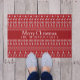Un arbre de Noël vintage, un flocon de neige et un motif en chandail de Jacquard de rennes en blanc et rouge autour de votre texte personnalisé sur un tapis de porte d'accueil de vacances. Customisez votre décor de vacances en plein air avec ce magnifique tapis de portes nostalgique et ancien.