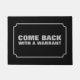 Un mat noir disant "Revenez avec un mandat" en lettres capitalisées. Un tapis de portes amusant pour les gens avec un type spécial d'humour et un amour pour la police.