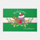 Pour les vacances d'hiver, ce tapis porte un Robin Rouge, avec un foulard violet et un casquette rouge. Le Robin repose sur des branches vertes d'eucalyptus aux baies rouges. Tout le texte peut être customisé.
