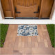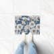Paillasson Roses blanches avec feuilles bleus sur blanc