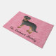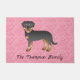 Illustration originale de Destei d'une jolie robe noire et bronzée couleur Rottweiler race chien sur une couleur arrière - plan rose avec un motif de coeurs de différentes tailles. Il y a aussi une zone de texte personnalisable pour un nom de famille ou un autre texte personnalisé.