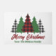 Ce tapis de porte de vacances rustique personnalisé présente un plaid rouge branché et des arbres de Noël verts au-dessus de votre message Joyeux Noël. Un joli look personnalisé et traditionnel, qui redevient à l'heure actuelle design, ce décor festif extérieur conviendra parfaitement à une famille qui aime le design classique et nostalgique.