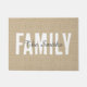 Rustique jute tan faux burlap "Famille" personnalisé monogrammed porte mat. Ajoutez une touche de pays mignon à votre entrée. Ça fait un grand souvenir de famille. Cliquez sur le bouton customiser pour customiser la typographie avec votre nom de famille. Note : le burlap dans ce dessin est une fausse texture imprimée.