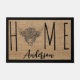 Bienvenue à votre famille et à vos amis avec ce design rustique, de pays, qui présente un arrière - plan faux burlap, le mot HOME, et votre nom de famille. Le "O" à la maison est la forme d'une tête de vache à long terme. Cliquez sur "Personnaliser" pour ajouter votre propre nom. Si vous avez besoin d'aide sur la personnalisation, envoyez-moi un courriel à zazzlevibes@gmail.com Merci de vous être arrêté par www.zazzle.com/WhisperingPines.
