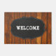 Le tapis de porte d'accueil a un look de planche en bois. Cadre du tableau de bord pour votre texte. Ajoutez votre nom de famille ou tout autre texte que vous souhaitez.
