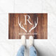 Rustique Moderne Monogrammé Cerfs Antlers Plaques en bois Bienvenue aux invités dans le style rustique avec ce tapis de porte moderne personnalisé en bois de cerf blanc avec un design de bois sur un arrière - plan en faux bois. Ce tapis d'entrée d'inspiration nature allie charme cabine rustique et design minimaliste moderne, parfait pour votre maison de lac, pavillon de chasse, refuge de montagne, ou maison de campagne. Les bois de cerf blancs créent un contraste audacieux par rapport à la toile de fond patinée en bois, faisant de ce tapis de porte un ajout unique à votre porche, à votre chambre à coucher ou à votre entrée. Customisez avec votre nom de famille, le texte initial, ou le texte personnalisé pour le rendre unique ou créer un ménage réfléchi, mariage, ou cadeau de vacances pour les amoureux de la nature et les amateurs de plein air.