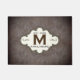 Style rustique, look en cuir vintage, monogrammed accueil porte- Antique, look en cuir marron vieilli arrière - plan avec nom de famille personnalisé et jumbo, marron monogramme initial avec un effet d'ombre, et la famille établie année centrée sur un cadre élégant et défraîchi avec des courbes. L'accueil des clients en face d'un confortable cabine en rondins ou d'un ranch traditionnel serait élégant. Cadeau de ménage chic et monogrammé pour la famille ou cadeau wedding shower unique pour les jeunes mariés.