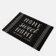 Bienvenue dans votre demeure avec ce charmant tapis de portes rustique de style ferme. Le design personnalisé comprend des éléments "home sweet home" en lettres neutres bronzées avec votre nom de famille et l'année établie en dessous. La bande de corde détaillant un riche arrière - plan noir complète la conception.