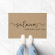 Typographie noir salaam moderne unique sur un arrière - plan motif de moquette marron clair. Agréable pour vous-même ou comme cadeau pour quelqu'un qui aimerait un mignon tapis de porte arabe esthétique. Tapis arabe islamique moderne par Arabix.