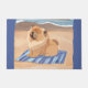 Un design sucré pour la décoration et l'usure estivales. Petit chow prend un bronzage sur la plage avec une expression bénie sur son visage.