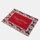 Élégant tapis de portes Joyeux avec un script blanc sur un arrière - plan rouge agrémenté d'une bordure de Santa Clause. Personnalisez avec votre nom de famille ou votre texte.