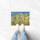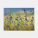 Des chicorées bleues et des fleurs de maïs fleurissent dans un champ d'herbe doré sous un ciel bleu pâle. Le arrière - plan blond et vert est également interrompu par le rose étincelant des fleurs d'herbe boueuse.