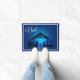 Ce mat de porte présente les tons bleus profonds de la scène du manager avec le texte de Noel Le Roi est Né dessus. Bordures de Blanc et de bleu royal. Customisez ce tapis de porte ou achetez tel que conçu. Image stock avec l'aimable autorisation de www.freepik.com