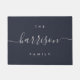Un grand cadeau pour les jeunes mariés ou les nouveaux propriétaires, notre porte d'accueil personnalisée en bleu marine chic et classique présente votre nom de famille ou nom de famille en typographie manuscrite.