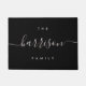 Un grand cadeau pour les jeunes mariés ou les nouveaux propriétaires, notre porte d'accueil personnalisée en noir chic et durable caractéristiques votre nom de famille ou nom de famille dans typographie manuscrite.