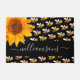 Décoré d'abeilles jaunes et noires souriantes et joyeuses et d'un grand tournesol aquarellé. Un arrière - plan noir chic. Personnalisez et ajoutez un nom. Le nom est écrit avec un script de style moderne écrit à la main avec des swashes. Pour que les swashes ne suppriment que le nom de l'échantillon, laissez les espaces ou émoticônes devant et après le nom.