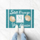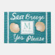 Montrez à votre famille l'amour de la plage et/ou de la voile avec ce tapis de portes personnalisé unique! Il contient l'expression amusante "brise marine oui s'il vous plaît" en écriture blanche avec des coquillages à coquillages tan. L'arrière - plan a un motif de vagues gris très clair avec des accents de corde blanche. Personnalisez la lettre monogramme et le nom de famille pour un ajout fabuleux à votre décor.