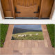 Un dessin photographique de mouflons gallois qui broutent sur la colline ensoleillée au moment où la pluie est sur le point de commencer.