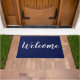 Un simple tapis bleu marine de porte d'entrée avec message de bienvenue. La couleur de la porte d'accueil est personnalisable. Changez votre couleur préférée pour correspondre à votre décor maison.
