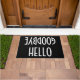 Bienvenue à vos invités dans votre maison et leur souhaite également adieu avec ce tapis de porte simple, moderne noir et blanc bonjour bonjour. La couleur arrière - plan peut être changée selon vos préférences.