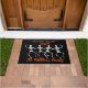 Ce mat amusant comporte quatre squelettes sur un arrière - plan noir avec un texte orange qui dit : Bienvenue dans notre crypte. Personnalisez facilement ce tapis éffrayant avec un nom personnalisé, un autre texte ou supprimez-le complètement.