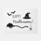 La silhouette originale d'Halloween simple de Destei, avec un casquette de sorcière, un balai, deux chauves-souris et une araignée, avec le texte : "Happy Halloween !". Les couleurs du design peuvent être changées, si vous le souhaitez.