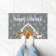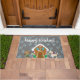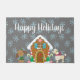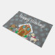 Un masque de saison de Noël amusant et festif comprend un gingerpain de taille chien, deux chiens et des flocons de neige bleu clair sur un arrière - plan gris foncé. Accueil Happy Holidays personnalisable en écriture moderne blanche.