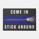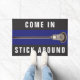 Décor de crosse amusant pour les joueurs, les entraîneurs et les fans d'équipe, avec un bâton de laxisme sur un arrière - plan bleu.