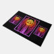 A dramatic stained glass angel, in vibrant jewel colors with a golden halo, announcing the advent of Christmas.