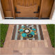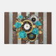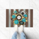 Paillasson Steampunk Clock and Turquoise Roses on Striped