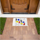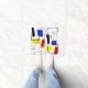 Un design d'art abstrait inspiré des motifs modernes du début du XXe siècle, avec des carrés géométriques déformés dans des couleurs primaires rouge, bleu et jaune.