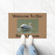 Ajoutez une touche de nature à la porte d'entrée de votre maison de plage avec ce tapis de bienvenue avec une photo pélicane. Ce beau grand oiseau flotte sur l'eau et se détache. L'arrière - plan brun et tout le texte peuvent facilement être customisés. Photo originale - C. McGouldrick