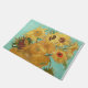Sunflowers (1889) Vincent van Gogh. Encore la vie sur un arrière - plan bleu. Un bouquet de tournesols lumineux trône dans un vase. Reproduction d'oeuvres d'art célèbres dans le domaine public.