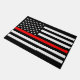 Un drapeau américain symbolique de la Ligne Rouge Mince graphique de conception personnalisée sur un tapis. Une excellente idée cadeau pour les rassemblements, les célébrations commémoratives et les occasions de commémoration. Utilisez le lien "Contacter ce concepteur" pour nous contacter avec vos demandes de design spécial ou pour obtenir de l'aide pour tout projet de personnalisation.