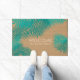 Paillasson Tan Burlap avec Feuilles Turquoises Palm