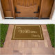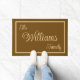 Elegant welcome doormat with a taupe script on a brown background. Personalize with your family name or text.