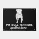 Les terriers de pitbull se sont corrompus ici, image et texte adorables de silhouette de Terrier de pitbull dans le style affligé de craie sur un arrière - plan noir.