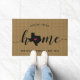 Montrez un peu de fierté de l'état de la maison avec ce tapis de porte personnalisé avec "home" dans le script de calligraphie en lettrage avec une carte de silhouette de l'état du Texas debout pour la lettre "O." Une illustration cardiaque à l'intérieur de la carte d'état complète la conception; vous pouvez changer la position du coeur à votre ville d'origine en ouvrant l'outil de conception et en faisant glisser la forme du coeur à votre endroit préféré. Personnalisez avec votre ville natale, nom de famille et année établie pour créer une touche de finition parfaite pour votre porte d'entrée, ou un cadeau inoubliable de chauffage domestique.