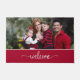 Paillasson Texte de bienvenue avec photo de famille, rouge