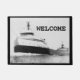 Customize the word "Welcome" to read anything you want. Suggestions include "Remember" or perhaps "November 10, 1975". SS Edmund Fitzgerald was an American Great Lakes freighter that sank in a Lake Superior storm on November 10, 1975, with the loss of the entire crew of 29. When launched on June 7, 1958, she was the largest ship on North America's Great Lakes, and she remains the largest to have sunk there. For 17 years Fitzgerald carried taconite iron ore from mines near Duluth, Minnesota, to iron works in Detroit, Toledo, and other Great Lakes ports. As a "workhorse," she set seasonal haul records six times, often breaking her own previous record.Captain Peter Pulcer was known for piping music day or night over the ship's intercom while passing through the St. Clair and Detroit Rivers (between Lakes Huron and Erie), and entertaining spectators at the Soo Locks (between Lakes Superior and Huron) with a running commentary about the ship. Her size, record-breaking performance, and "DJ captain" endeared Fitzgerald to boat watchers. Carrying a full cargo of ore pellets with Captain Ernest M. McSorley in command, she embarked on her ill-fated voyage from Superior, Wisconsin, near Duluth, on the afternoon of November 9, 1975. En route to a steel mill near Detroit, Fitzgerald joined a second freighter, SS Arthur M. Anderson. By the next day, the two ships were caught in a severe storm on Lake Superior, with near hurricane-force winds and waves up to 35 feet (11 m) high. Shortly after 7:10 p.m., Fitzgerald suddenly sank in Canadian (Ontario) waters 530 feet (160 m) deep, about 17 miles (15 nautical miles; 27 kilometers) from Whitefish Bay near the twin cities of Sault Ste. Marie, Michigan, and Sault Ste. Marie, Ontario—a distance Fitzgerald could have covered in just over an hour at her top speed. Although Fitzgerald had reported being in difficulty earlier, no distress signals were sent before she sank; Captain McSorley's last message to Anderson said, "We are holding our own." Her crew of 29 perished, and no bodies were recovered. More than 15,000 people attended Fitzgerald's christening and launch ceremony on June 7, 1958. But the event was plagued by misfortunes: When Elizabeth Fitzgerald, wife of Edmund Fitzgerald, tried to christen the ship by smashing a champagne bottle over the bow, it took her three attempts to break it. A delay of 36 minutes followed while the shipyard crew struggled to release the keel blocks. Upon sideways launch, the ship crashed violently into a pier. On September 22, 1958, Fitzgerald completed nine days of sea trials.