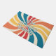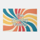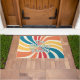 With a retro twist, personalize your doormat with a 70s inspired, colorful sunburst. The family name or other custom text is in layers, with the top layer being outlined text. The sunburst features multiple colors on a creme background.