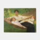 Ce dessin présente un tableau de l'artiste impressionniste américain Joseph DeCamp (1858-1923). Il montre une femme et deux enfants se relaxant sur un hamac en été. La femme est la femme de l'artiste Edith, la jeune fille est sa fille Sally et le bébé garçon est son fils Ted. Les femmes sourient doucement au spectateur, tandis que la jeune fille semble s'ennuyer et que le petit garçon dort. Le hamac est situé dans un jardin luxuriant avec des arbres verts et de l'herbe. L'oeuvre originale a été peinte par Joseph DeCamp en 1895.
