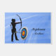 Matelas spécial pour cette archer spéciale femme. L'arrière - plan bleu coloré a la silhouette d'un archer féminin à côté d'une grande cible colorée. Personnalisez-le dans l'espace à droite avec un nom. Le texte est facilement édité à l'aide du modèle. Pour les autres modifications (police de type, couleur, taille ou emplacement différents), sélectionnez "personnaliser" puis sélectionnez "Modifier à l'aide de l'outil de conception". Disponible également en petite taille. Consultez les options à droite.