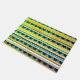 Bleu et jaune rayures et triangles.
