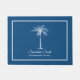 Ajoutez votre touche spéciale à ce design simple et élégant, avec votre nom de famille ou votre phrase et date établie en texte blanc et palmier encadré dans une bordure blanche sur un arrière - plan bleu classique.