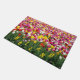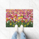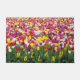 Un champ complètement des tulipes néerlandaises. Au fond du ressort d'image les tiges vertes de la première rangée des tulipes, avec les fleurs sur le dessus. De là sur, au loin, l'arrière - plan trouble, juste tulipe de fleurs… seulement fleurit dans beaucoup de couleurs. Du jaune, au rouge, au pourpre, au rose. Vue typique dans Pays-Bas. Sur les tiges vertes, le mot Hollande.