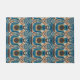 Motif asymétrique ethnique autochtone du Sud-Ouest décoratif dans des tons turquoise, vert et terreux or et marron.