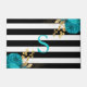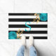 Paillasson Turquoise Or Floral Monogramme Noir Blancs