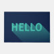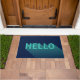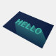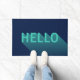 Tapis de porte bleu marine avec un design abstrait moderne avec un "Hello" sarcelle aqua ayant un dégradé d'ombre longue. C'est une façon amusante d'accueillir vos invités.